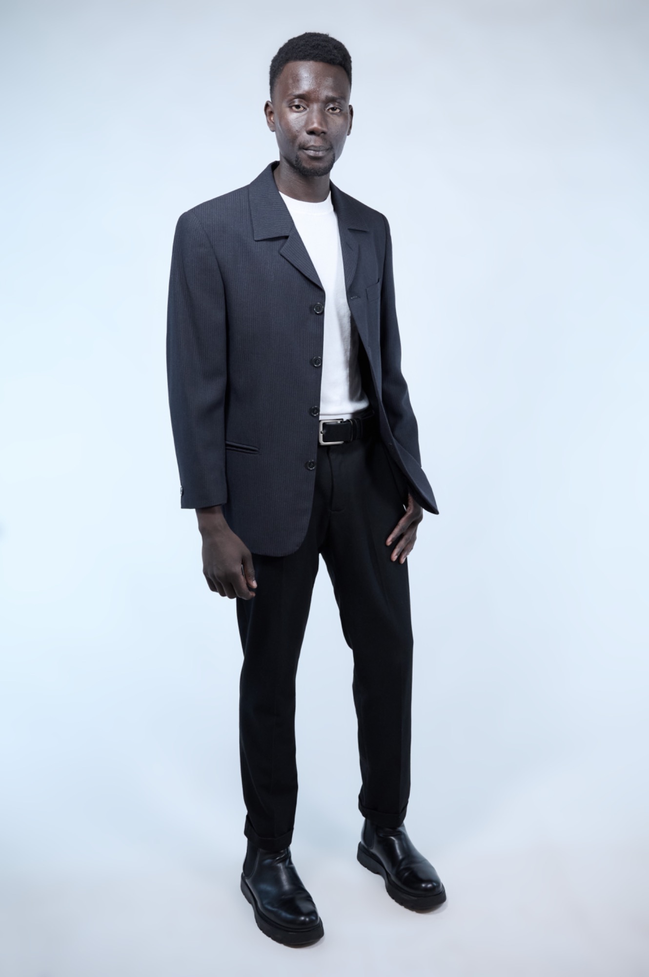 Fotografías inspiradas en un look de traje, con la idea de transmitir un estilo cómodo y casual de trabajo. En esta serie se presenta un total look, destacando especialmente la chaqueta como pieza principal. A través de diferentes ángulos y poses se puede apreciar el tejido de la prenda, los detalles de confección, cómo se adapta al cuerpo y la forma que genera al llevarla puesta. El objetivo era mostrar un conjunto elegante pero versátil, que combina formalidad y comodidad en un mismo look.