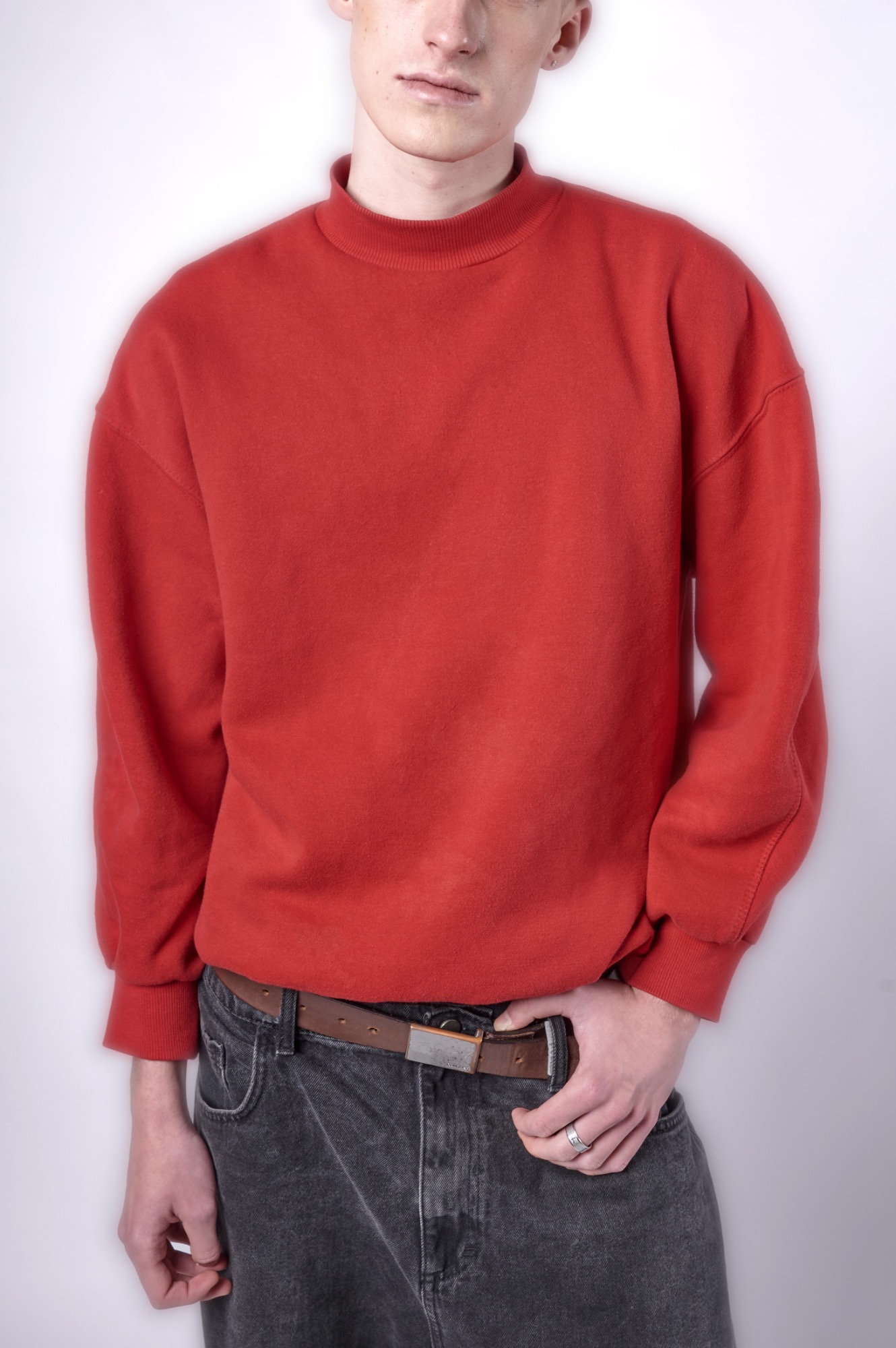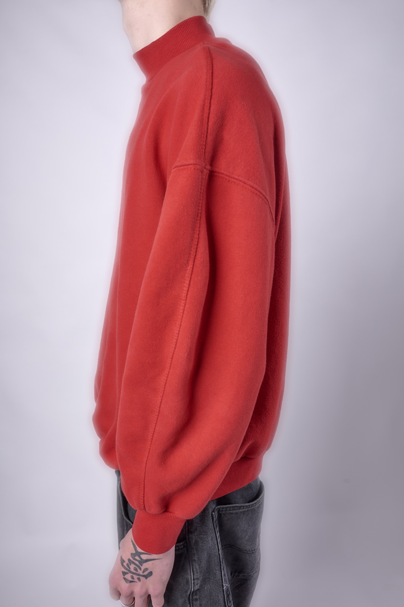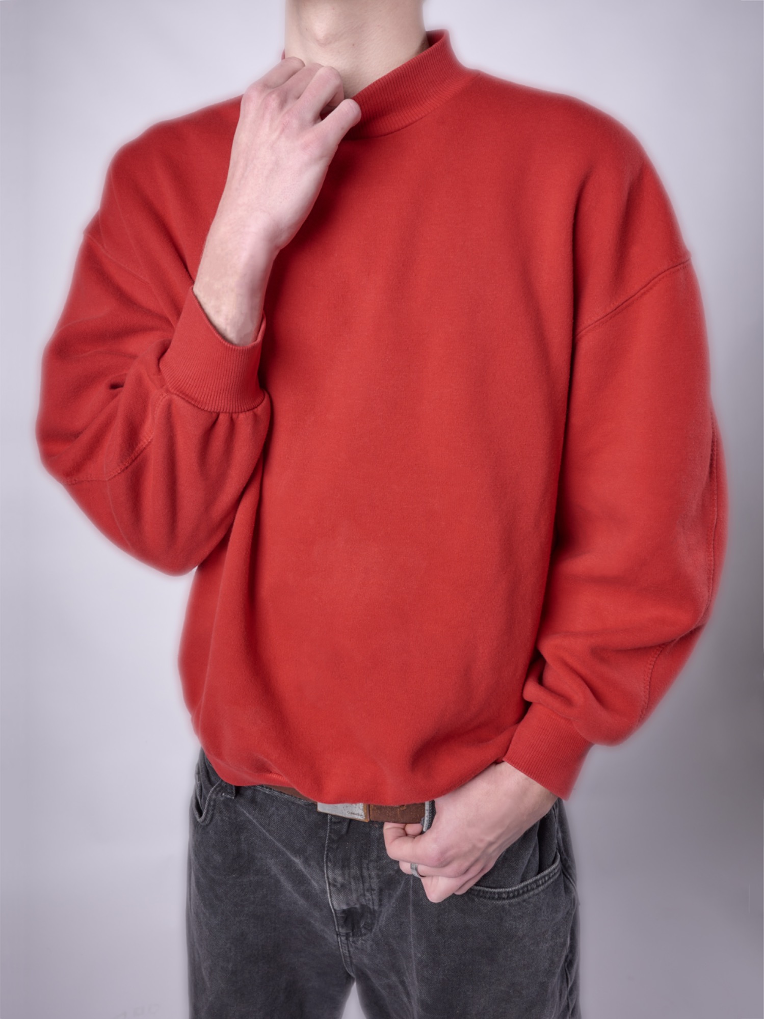 Fotografías de una sudadera básica realizadas con el objetivo de destacar la forma del cuello y el diseño de las mangas. Se trabajaron diferentes poses con los brazos completamente estirados, ligeramente doblados y totalmente flexionados, para mostrar con detalle la caída de la tela y cómo cambia la forma de las mangas en cada posición. De este modo, se consigue una visión completa de la prenda y de sus características principales.