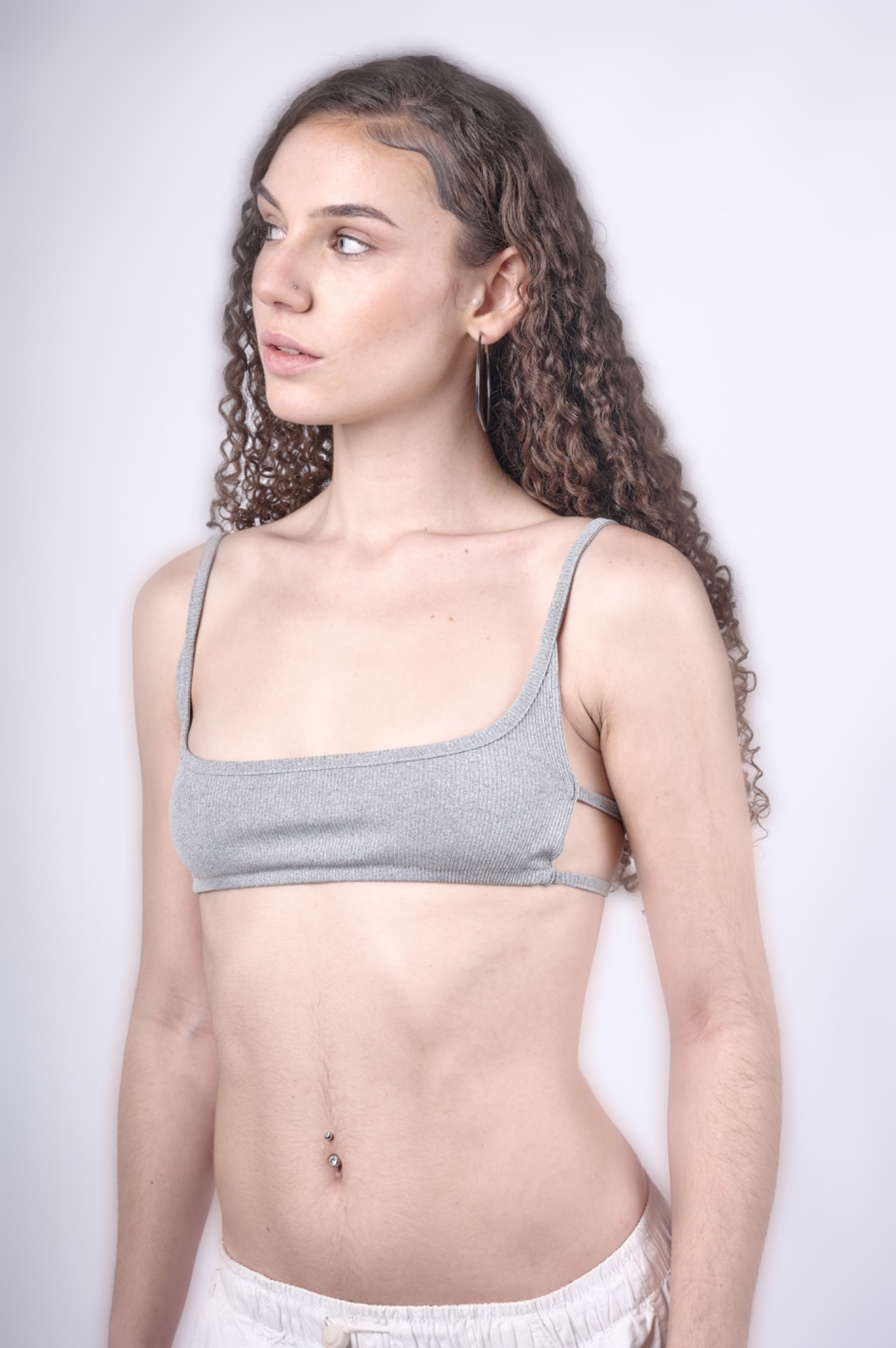Fotografías de un top, destacando claramente su forma, textura y detalles del tejido. Se trabajó con distintos ángulos y enfoques para que se pueda apreciar cómo se adiere la prenda sobre el cuerpo, sus acabados y la calidad del material, mostrando tanto la comodidad como la estética del top.